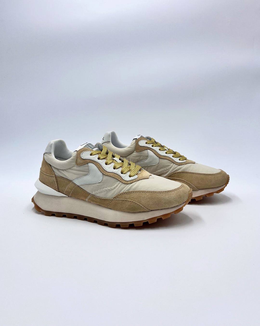 En Llenas 1953, seleccionamos las Voile Blanche QWARK HYPE Ecru Beige, una zapatilla que destaca por su combinación de materiales ligeros y su diseño sofisticado.